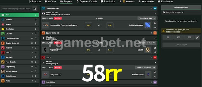 O 58rr oferece uma grande seleção de opções de apostas em e-sports com probabilidades competitivas
